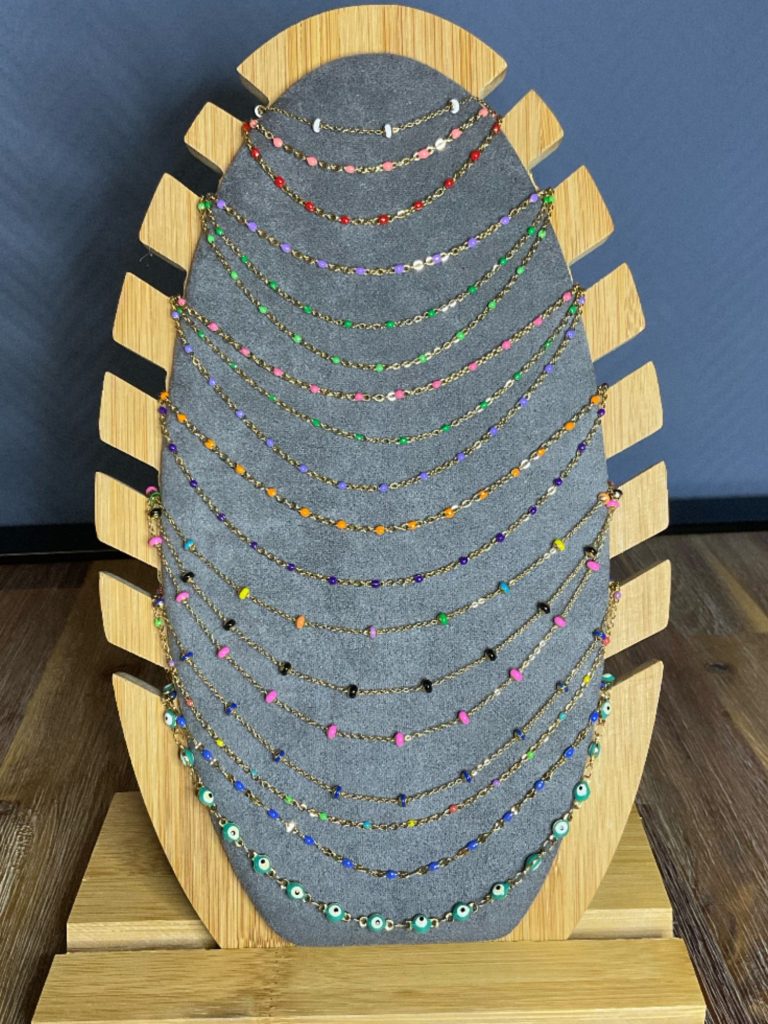Choix des chaînes en acier inoxydable doré avec perles époxy de couleurs disponibles